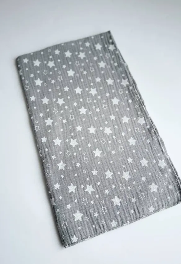 Пелюшка муслін жатка. Принт Зірка. Колір: Сірий. Розмір: 90х80 | Матеріал: Муслін. Home.mama
