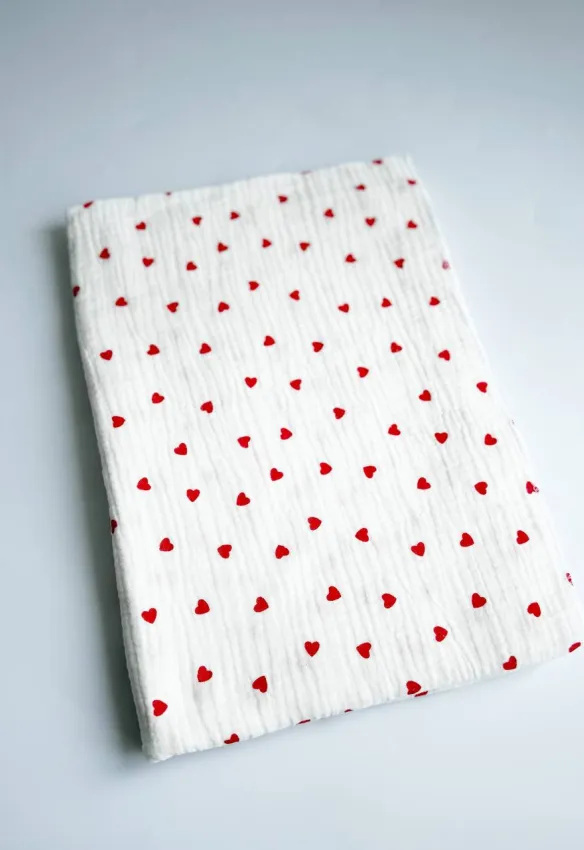 Пелюшка муслін жатка. Принт Серце. Колір: Білий/Рожевий. Розмір: 90х80 | Матеріал: Муслін. Home.mama