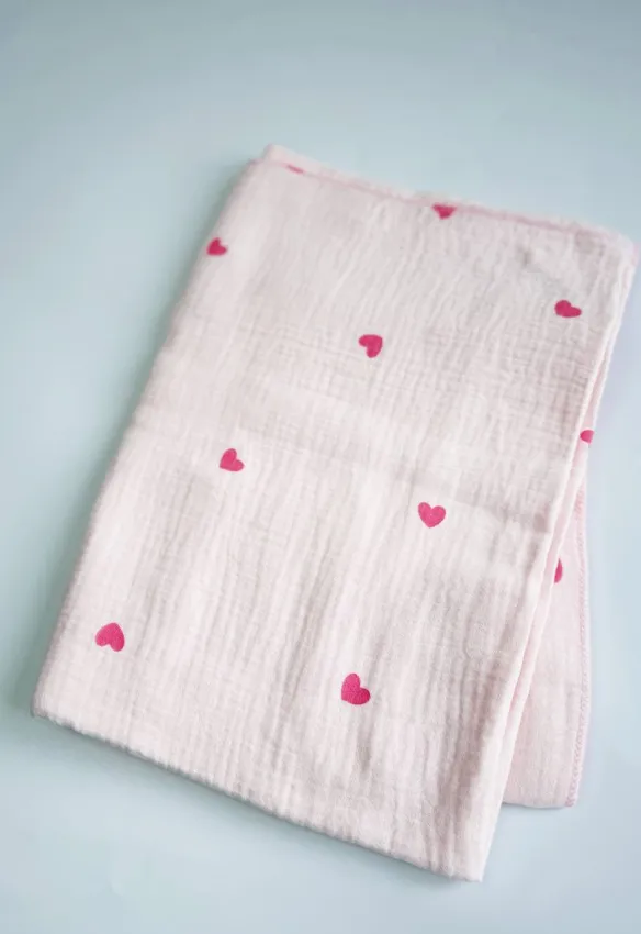 Пелюшка муслін жатка Серце . Колір: Рожевий. Розмір: 100х135 | Матеріал: Муслін. Home.mama