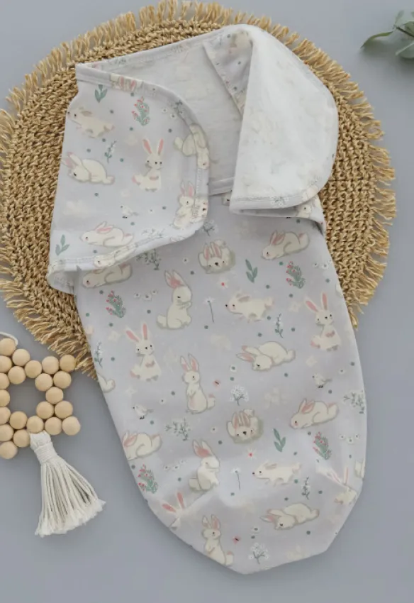 Зростаюча бавовняна пелюшка кокон. Принт: Зайчик. Колір: Молочний . Sweet Mario