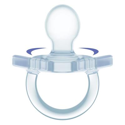 - М'яка та вигнута основа пустушки дозволяє губам та язику перебувати у фізіологічному положенні, як під час грудного вигодовування.